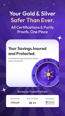 Aura Gold सिर्फ़ एक ऐप नहीं, बल्कि आपके सोने के निवेश का विश्वसनीय साथी है। आपके द्वारा ख़रीदा गया हर ग्राम सोना भारत के बैंक-ग्रेड वॉल्ट्स में पूरी सुरक्षा के साथ संग्रहीत किया जाता है, जहाँ आपको चोरी या महंगे लॉकर शुल्क की कोई चिंता नहीं करनी पड़ती। SEBI-नियमित स्वतंत्र ट्रस्टी द्वारा सुरक्षित, आपको 24 कैरेट शुद्ध सोने की गारंटी मिलती है। छोटे-छोटे निवेश के माध्यम से अपनी धन-संपदा बढ़ाने की यह एक अनूठी सुविधा है। इसका सरल और सहज इंटरफ़ेस सुनिश्चित करता है कि हर लेन-देन परेशानी-मुक्त और सुरक्षित हो, चाहे आप पहली बार निवेश कर रहे हों या अनुभवी निवेशक हों।