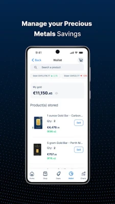 GOLD AVENUE सोने, चांदी, प्लैटिनम और पैलेडियम में निवेश करने का एक भरोसेमंद ऐप है। लाइव कीमतें ट्रैक करें, तुरंत खरीदारी करें और स्विट्जरलैंड में अपने कीमती धातुओं को सुरक्षित रूप से स्टोर करें। शुरुआती और अनुभवी निवेशकों के लिए आसान और सुरक्षित।