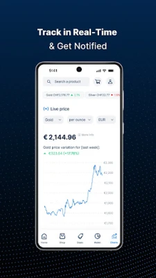 GOLD AVENUE के साथ बाजार की गतिविधियों से अवगत रहना आसान है, जो वास्तविक समय के बाजार अपडेट और सोने व चांदी के लिए विस्तृत मूल्य चार्ट प्रदान करता है। आप कुछ ही टैप में निवेश-योग्य सिक्के और बार तुरंत खरीद सकते हैं, जिसमें 100% सुरक्षित चेकआउट प्रक्रिया शामिल है। इसकी एक अनूठी विशेषता €10,000 तक की बहुमूल्य धातुओं के लिए निःशुल्क बीमाकृत स्विस भंडारण की सुविधा है, जो उन्हें उच्च-सुरक्षा वाले स्विस तिजोरियों में सुरक्षित रखती है। जरूरत पड़ने पर, आप अपनी संग्रहीत धातुओं को बाजार मूल्य पर तुरंत बेच सकते हैं, बिना किसी छिपी लागत या शुल्क के। यूरोप भर में गोपनीय और बीमाकृत डिलीवरी विकल्प भी उपलब्ध हैं, जो आपकी खरीद को सीधे आपके दरवाजे तक पहुंचाते हैं।