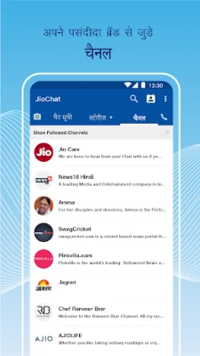 JioChat मनोरंजन और सूचना का भी एक केंद्र है। अपने पसंदीदा ब्रांड के साथ सीधे जुड़ने के लिए विशेष ब्रांडेड चैनलों का अन्वेषण करें, जहाँ आप प्रश्न पूछ सकते हैं और समाचार, ज्योतिष, यात्रा और फिल्मों पर नवीनतम अपडेट प्राप्त कर सकते हैं। साथ ही, ऐप पर प्रतिदिन रोमांचक छोटी वीडियो स्टोरीज़ देखें, जो भोजन, यात्रा, मनोरंजन और स्वास्थ्य जैसी विभिन्न श्रेणियों में आपके लिए विशेष रूप से तैयार की गई हैं। अपनी पसंदीदा भाषा में JioChat का उपयोग करने की सुविधा का आनंद लें, जिसमें अंग्रेजी, मराठी, गुजराती, पंजाबी, बंगाली, कन्नड़, तमिल, तेलुगु, मलयालम और ओडिया जैसी प्रमुख भारतीय भाषाएँ शामिल हैं, जिससे हर उपयोगकर्ता के लिए एक सहज अनुभव सुनिश्चित होता है।
