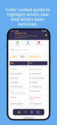 यह ऐप आपको कई बेहतरीन सुविधाओं के साथ सशक्त बनाता है। इसकी 'आमने-सामने तुलना' (side-by-side comparison) कार्यक्षमता से आप पुराने और नए प्रावधानों के बीच के अंतर को तुरंत समझ सकते हैं। एक शक्तिशाली खोज सुविधा (powerful search) के माध्यम से किसी भी धारा या विषय को पल भर में ढूंढें, जहाँ महत्वपूर्ण बिंदु स्वतः उजागर हो जाएंगे। अपनी पसंदीदा या महत्वपूर्ण धाराओं को तुरंत एक्सेस के लिए बुकमार्क करें, ताकि आप उन्हें कभी भी, कहीं भी फिर से देख सकें। इंटरनेट न होने पर भी, यह ऐप पूरी तरह से ऑफ़लाइन उपलब्ध है, और नवीनतम संशोधनों के साथ नियमित रूप से अपडेट किया जाता है, जिससे आप हमेशा नवीनतम जानकारी से अवगत रहें।