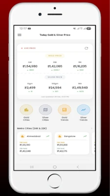 आज के सोने और चांदी के भाव जानने की चिंता अब हुई खत्म! यह एप्लिकेशन आपको भारत भर में सोने और चांदी के वास्तविक समय के, सबसे सटीक और विश्वसनीय दाम प्रदान करता है। रोज़ाना अपडेट होने वाले 'आज का सोना भाव' और 'आज का चांदी भाव' के साथ, आप बाज़ार के हर उतार-चढ़ाव से तुरंत अवगत रहेंगे और हमेशा सही निर्णय ले पाएंगे। हमारी जानकारी सीधे आधिकारिक स्रोतों से आती है, जिससे आप निश्चिंत होकर इसका उपयोग कर सकते हैं।